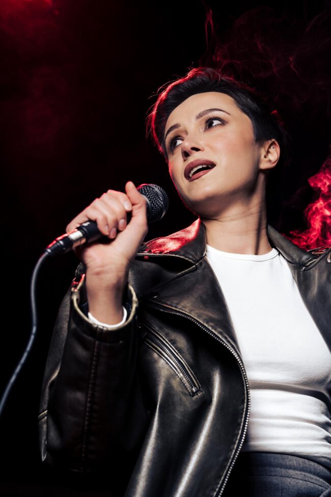 For some time I have had an image in mind that I wanted to create. I envisioned a female rockstar on stage putting her “all” into the microphone. The view would be from the perspective of someone in the front row of the show. Finally, I wanted some colored light and smoke to provide some atmosphere. You can see below some inspiration images I grabbed from cosmos.so to send to those who I wanted to have on the team.