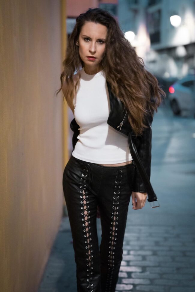 Wardrobe for Karina turned out to be an easy get as we had purchased the perfect out fit for her for a previous shoot. You can see her in the images below a in pair of black leather pants and jacket from that earlier session. As for Yana, she was just going to pick out her own I felt whatever she brought was going to be a bonus she Karina had been the focus of the shoot anyway. It urns out her outfit worked out very well as I’ll show later.